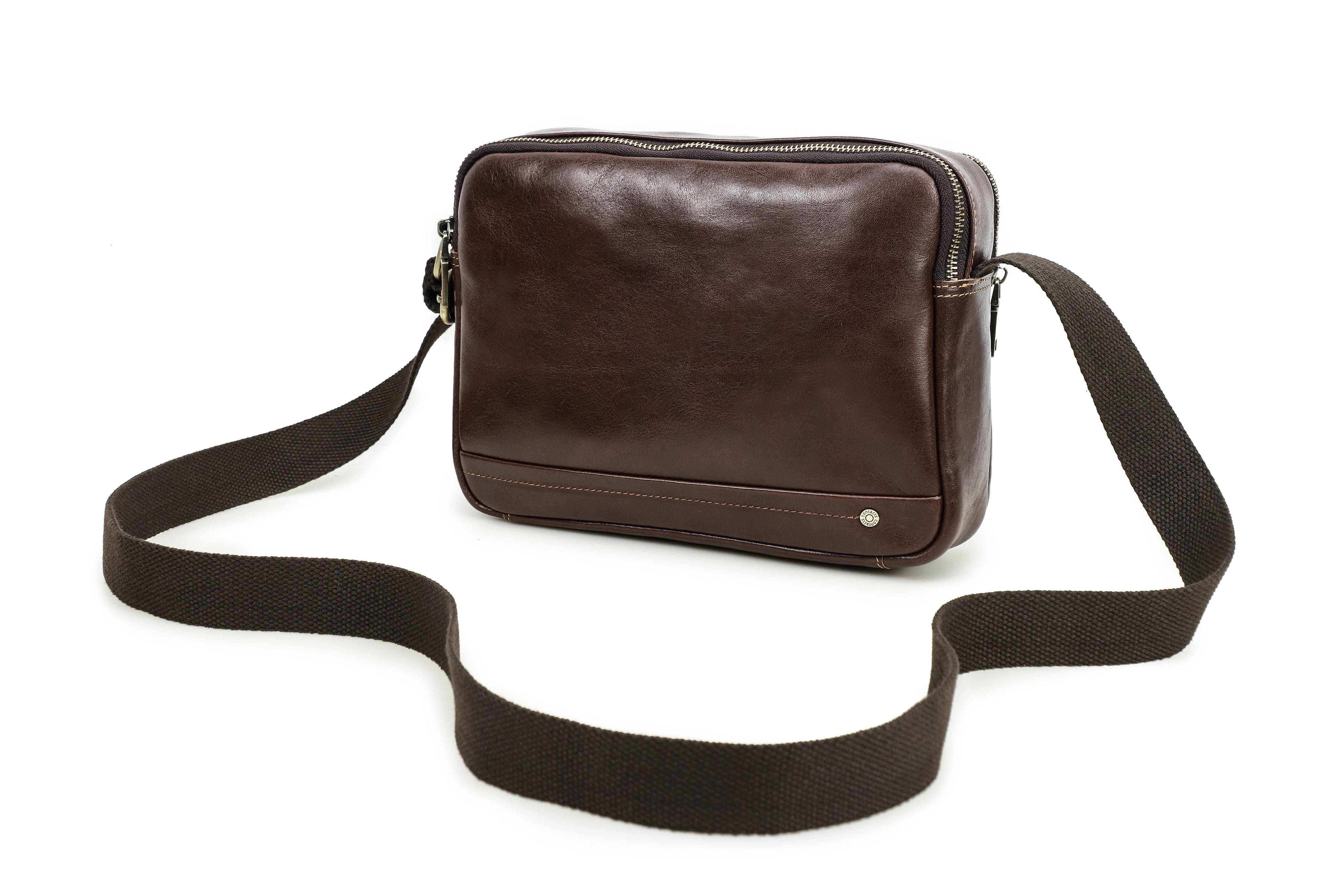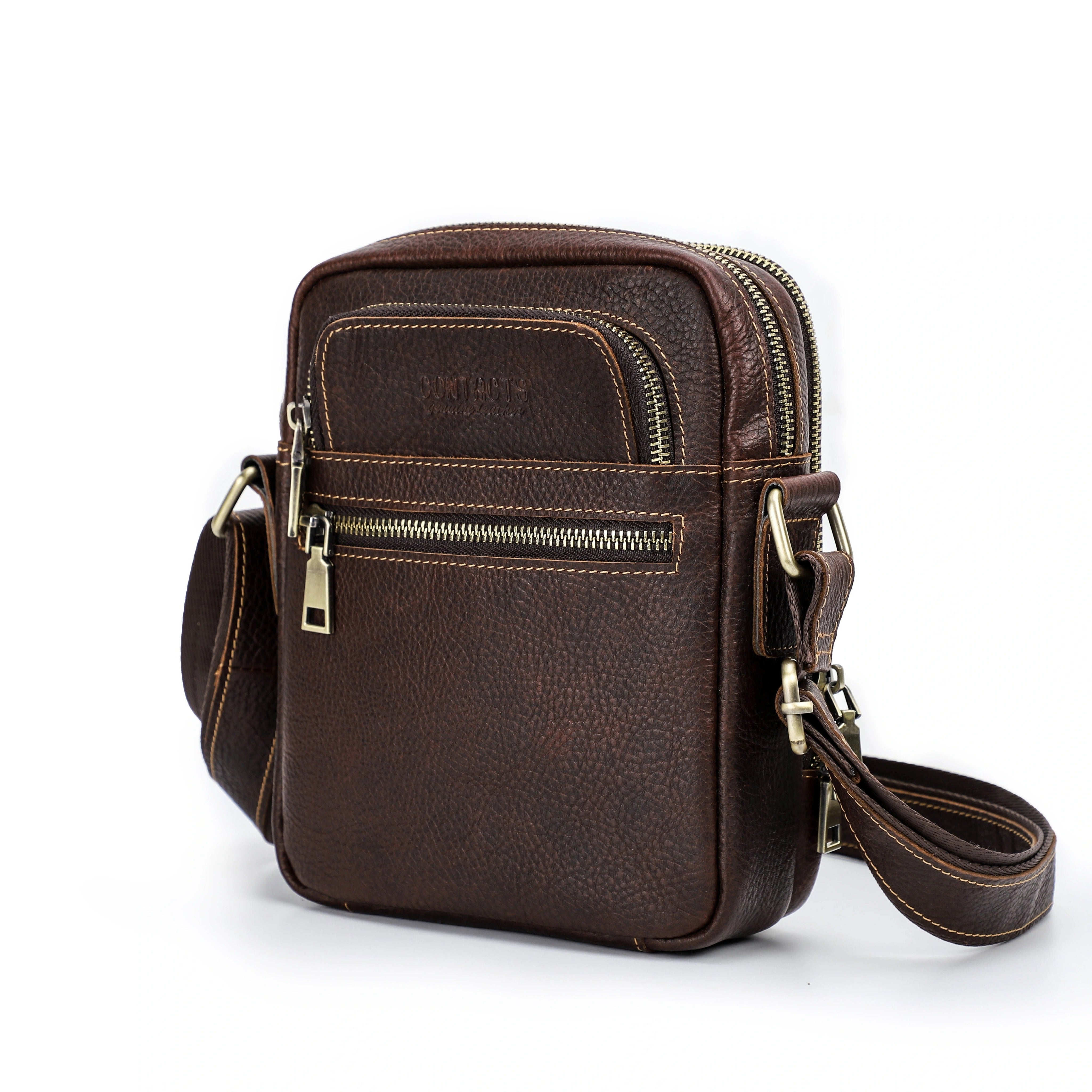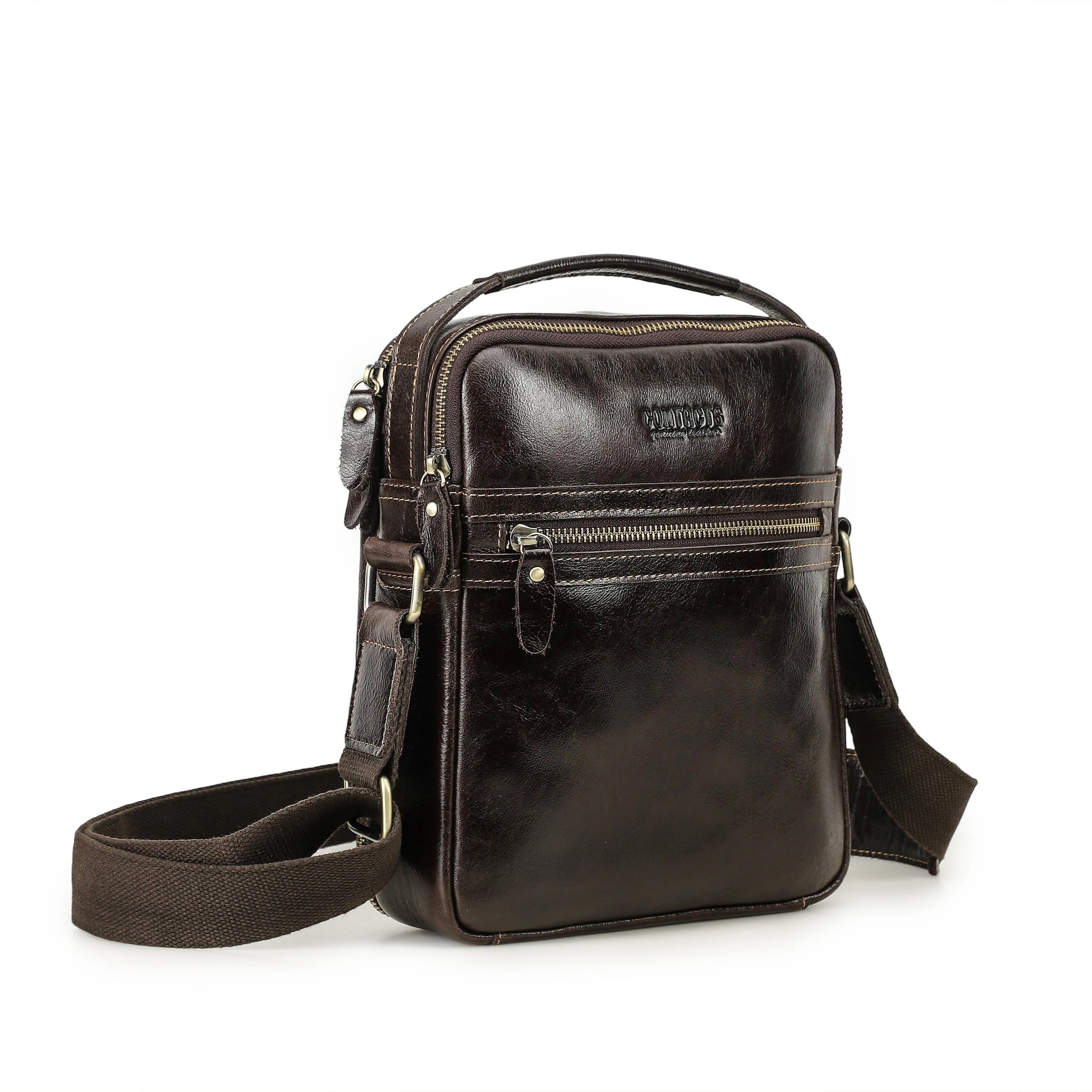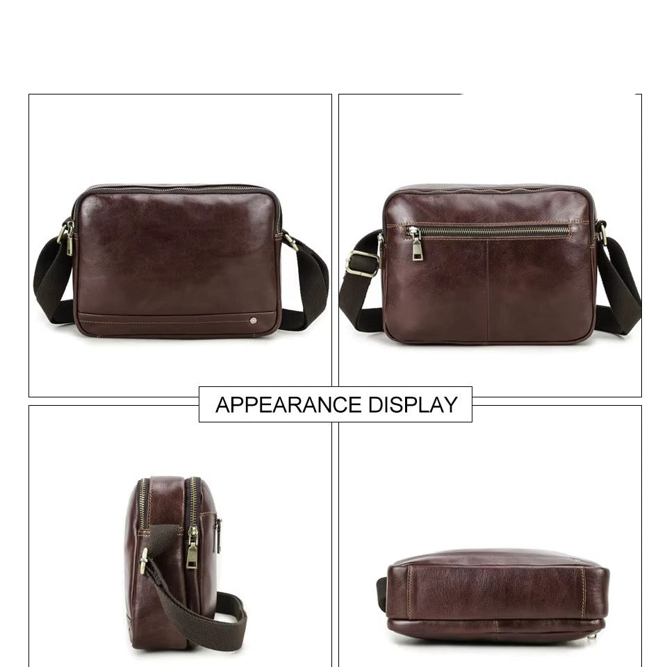 Handmade Crazy Horse Leather Zipper Chest Bag for Men, Vintage Leather Crossbody Bag for Men - color variant: Coffee