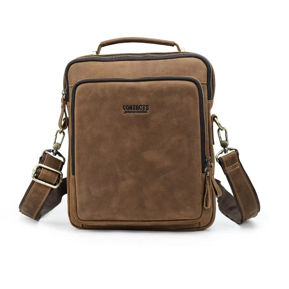 Handmade Crazy Horse Leather Zipper Chest Bag for Men, Vintage Leather Crossbody Bag for Men - color variant: Light Brown