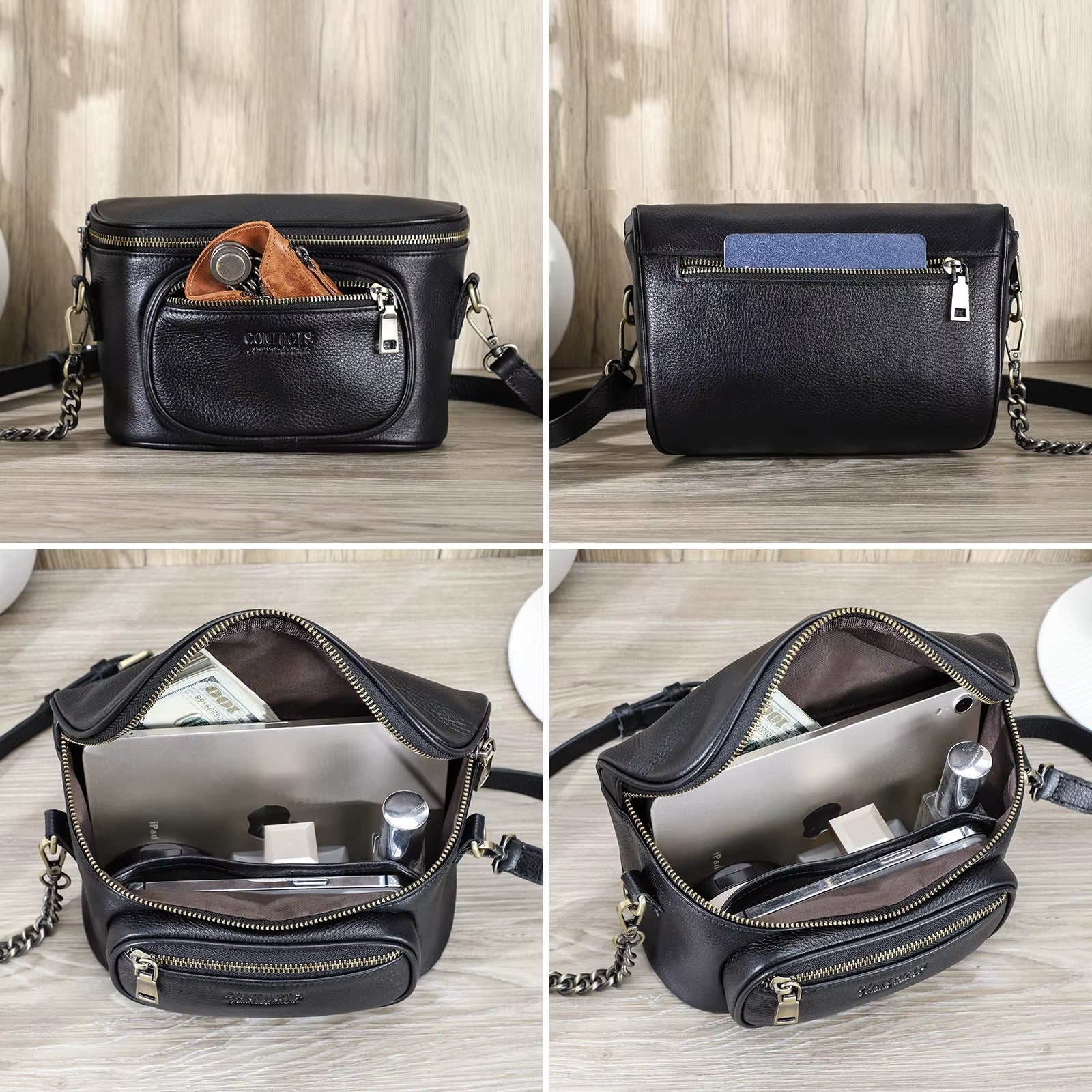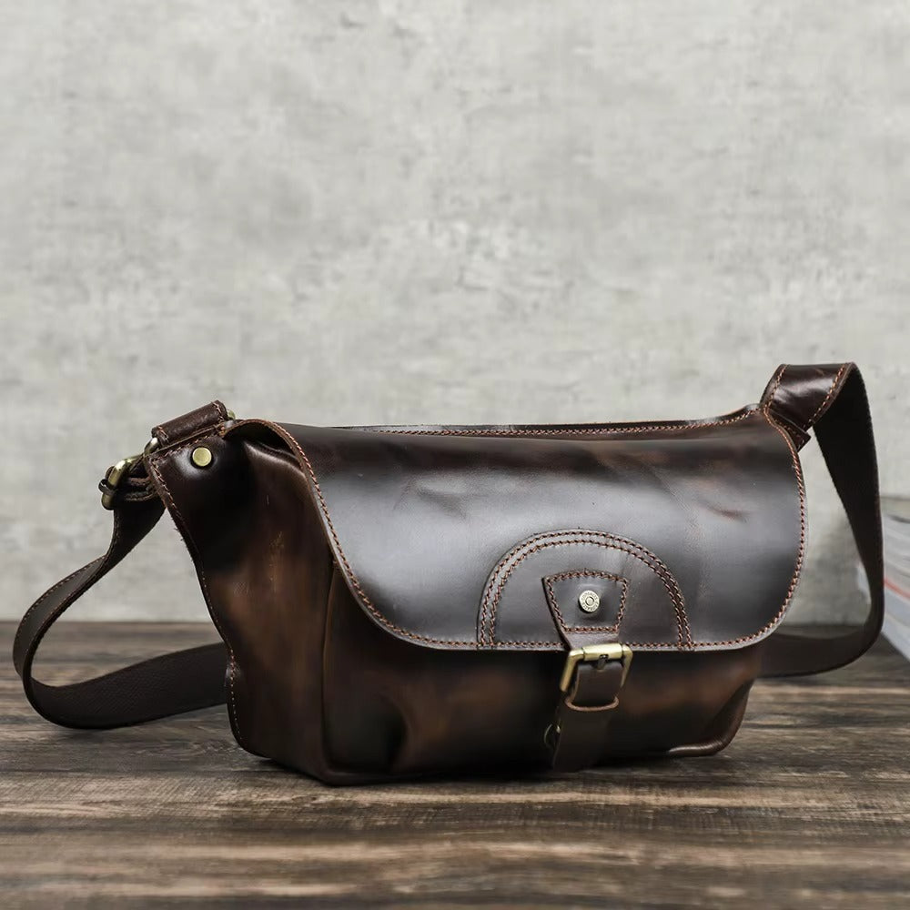 Elevate your accessory game with our handmade crossbody bags, crafted from premium full-grain crazy horse leather. Known for its rugged durability and unique vintage patina, this leather not only looks stunning but also stands the test of time. Each bag is meticulously handmade by skilled artisans, ensuring that every piece is a testament to superior craftsmanship and quality. Our exclusive small-batch production means that you own a unique accessory that few others will have. The thoughtful design provides ample space for your essentials while maintaining a stylish silhouette, making it perfect for daily adventures or nights out. With our motto, "Made for All, Priced for You," you can indulge in luxury without breaking the bank. Choose a crossbody bag that combines functionality with elegance, and experience the difference that handcrafted quality makes. Don't settle for ordinary—invest in a piece that reflects your unique style and stands out in any crowd.
