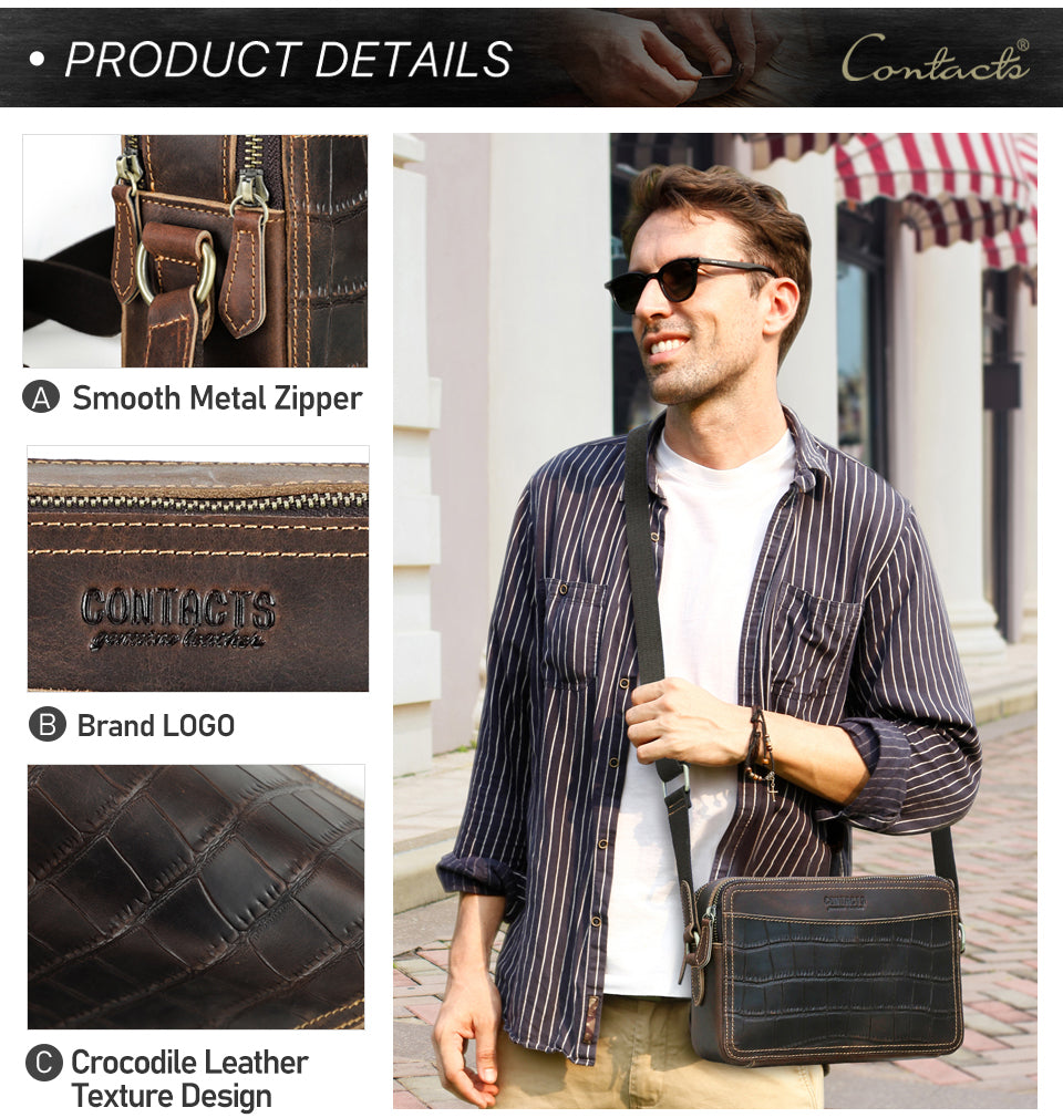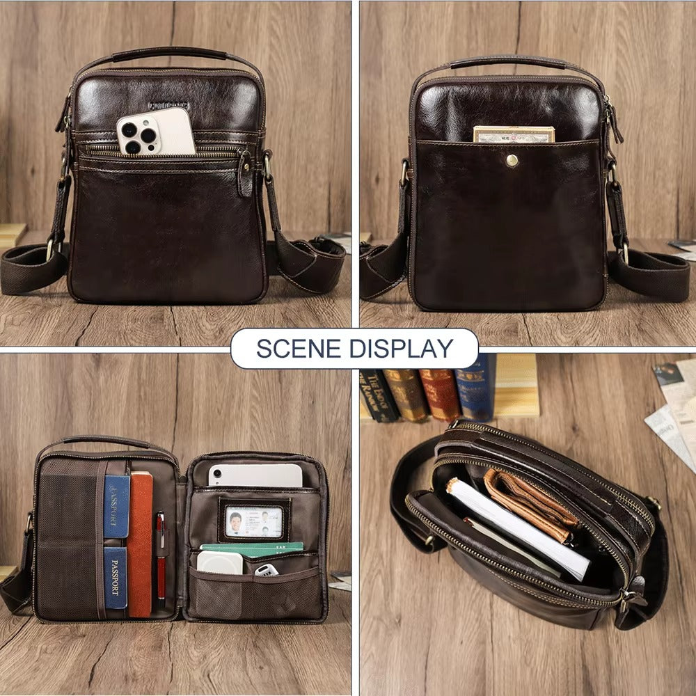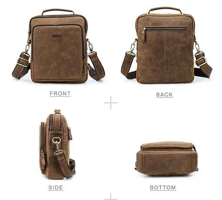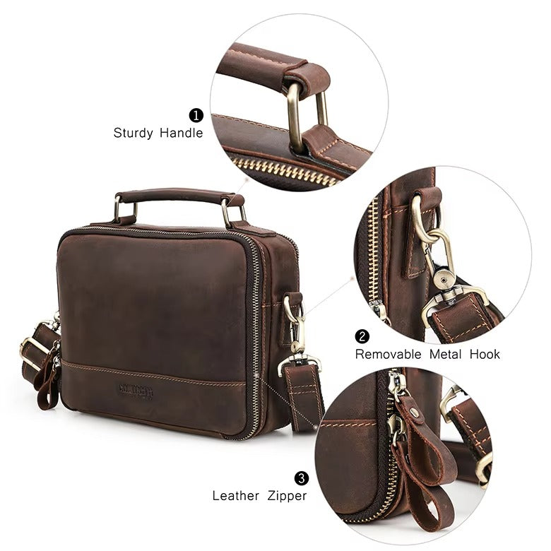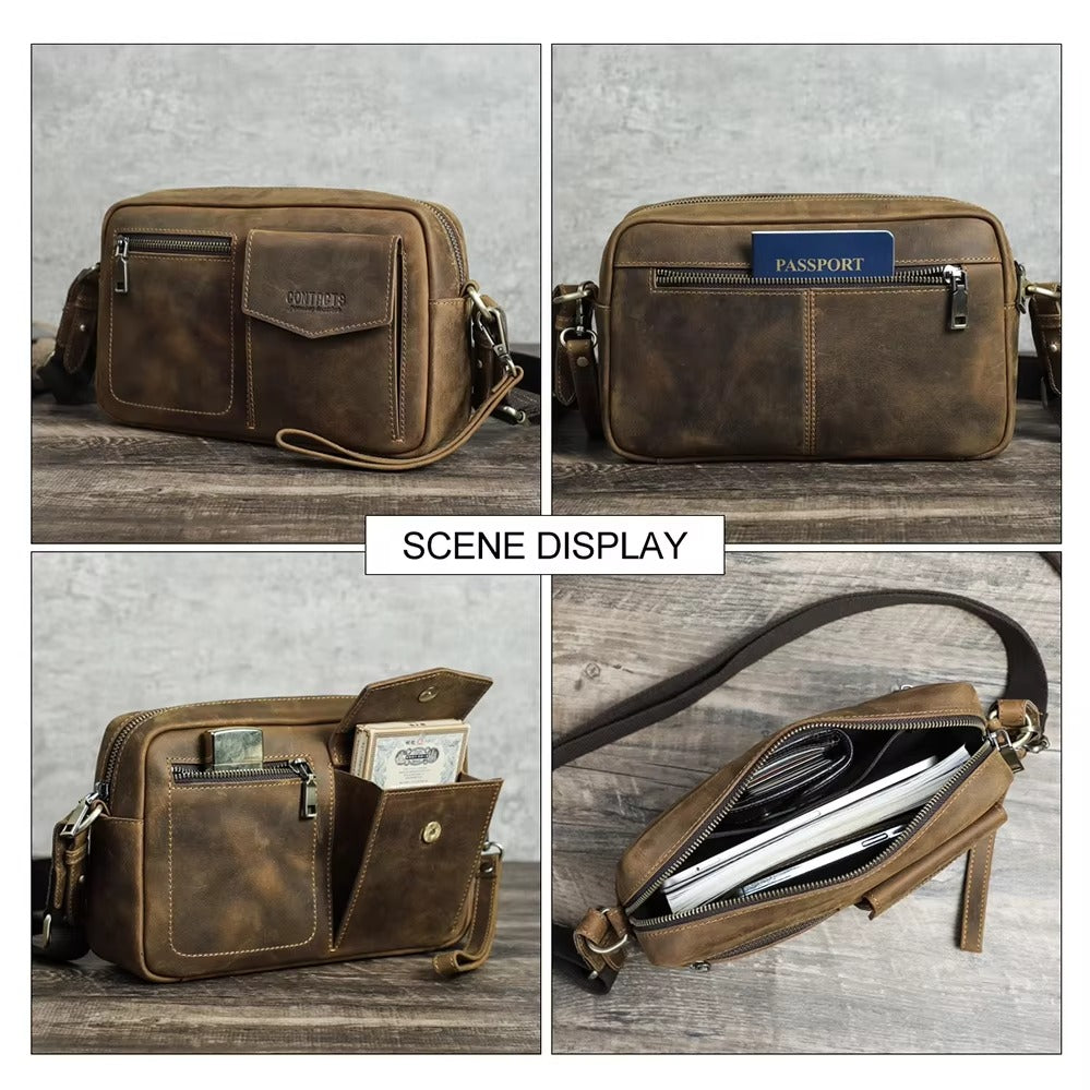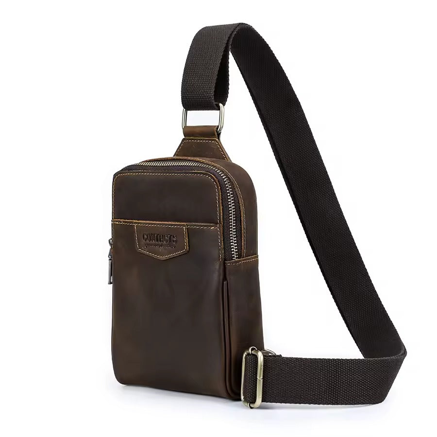 Handmade Crazy Horse Leather Zipper Chest Bag for Men, Vintage Leather Crossbody Bag for Men