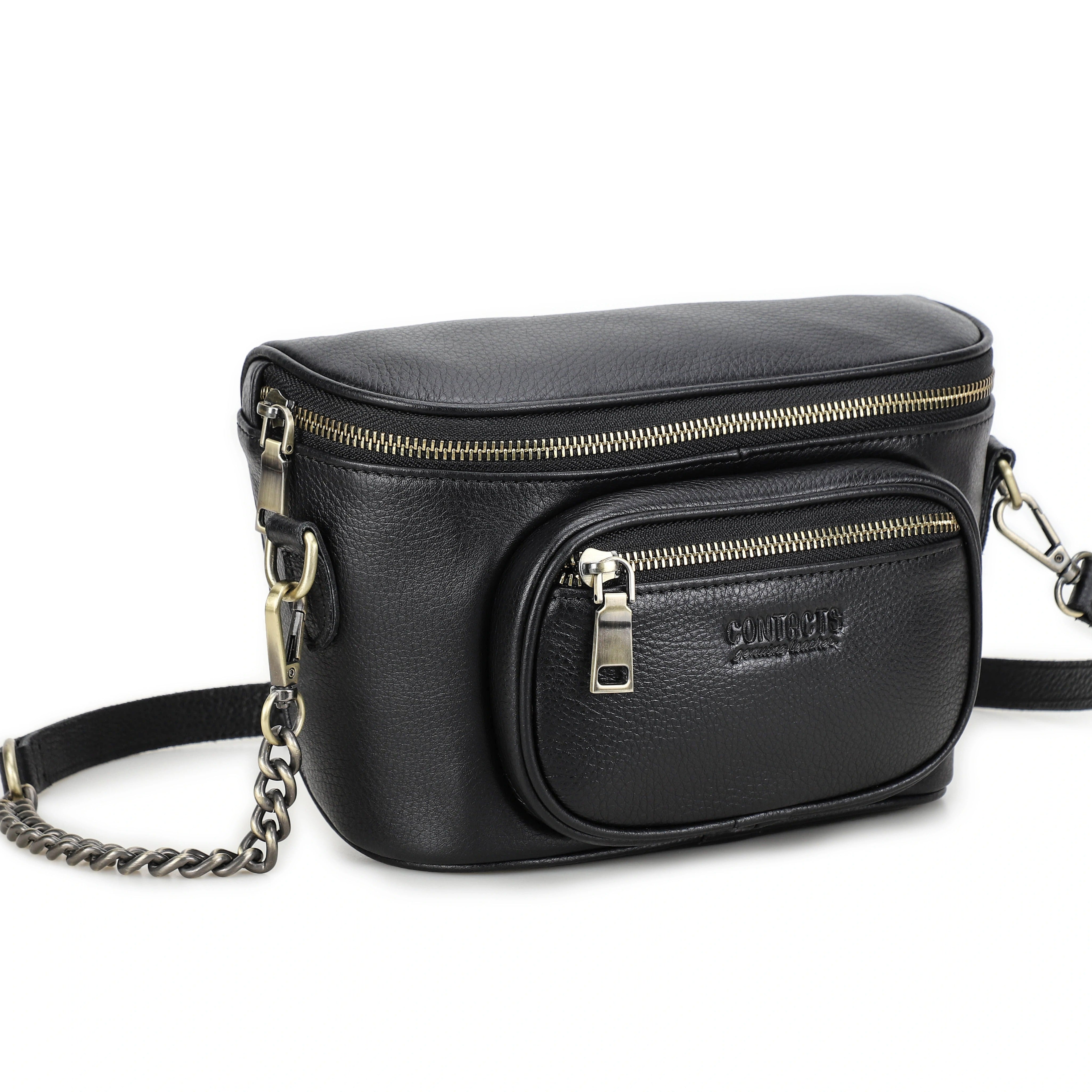 Handmade Crazy Horse Leather Zipper Chest Bag for Men, Vintage Leather Crossbody Bag for Men - color variant: Black