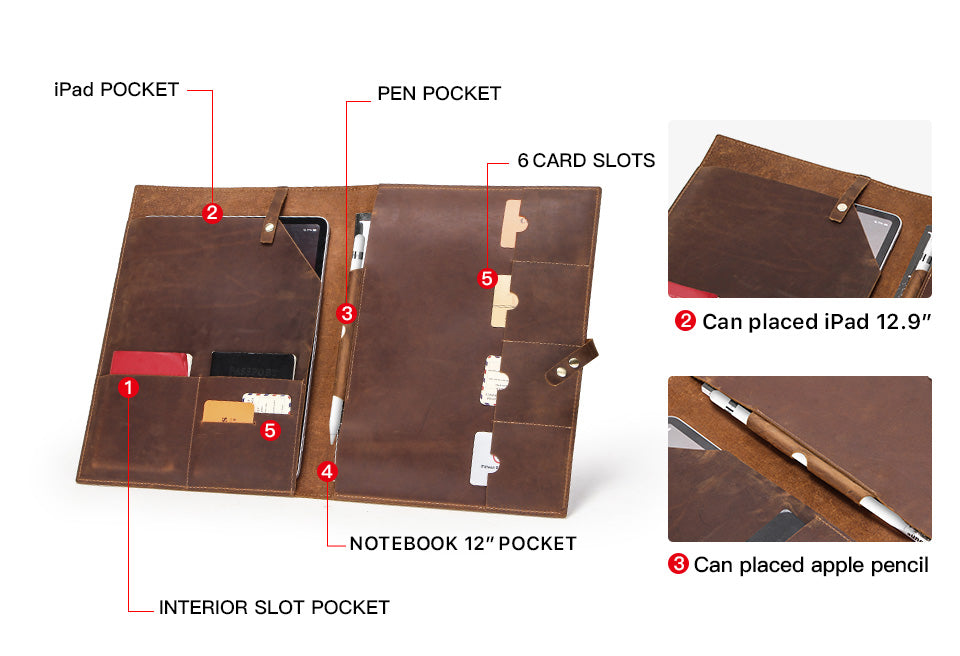 Unisex Leather Tablet Organizer for iPad, Premium Multi-Pocket Case