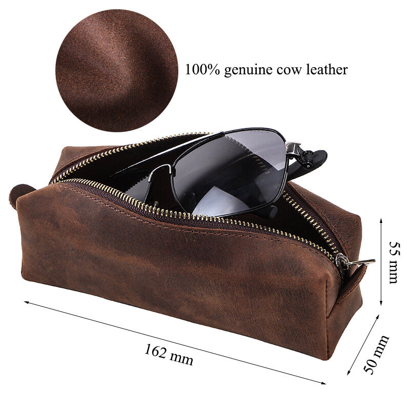 Compact Leather Pencil Pouch, Handmade Genuine Pencil Bag