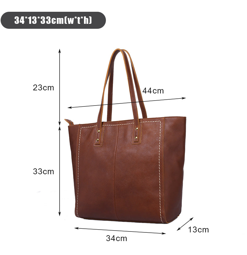 Genuine Brown Leather Tote Bag - Stylish & Spacious for Everyday Use