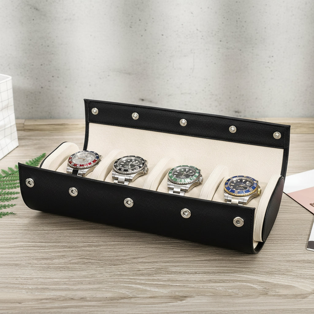 Genuine Leather 4 Slots Watch Roll Travel Case