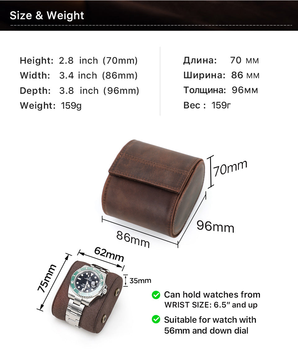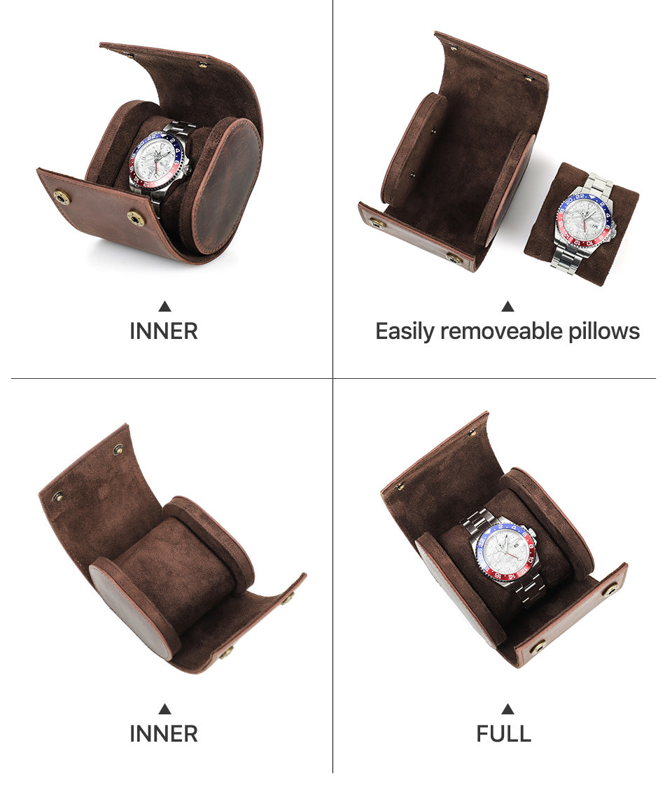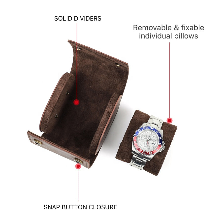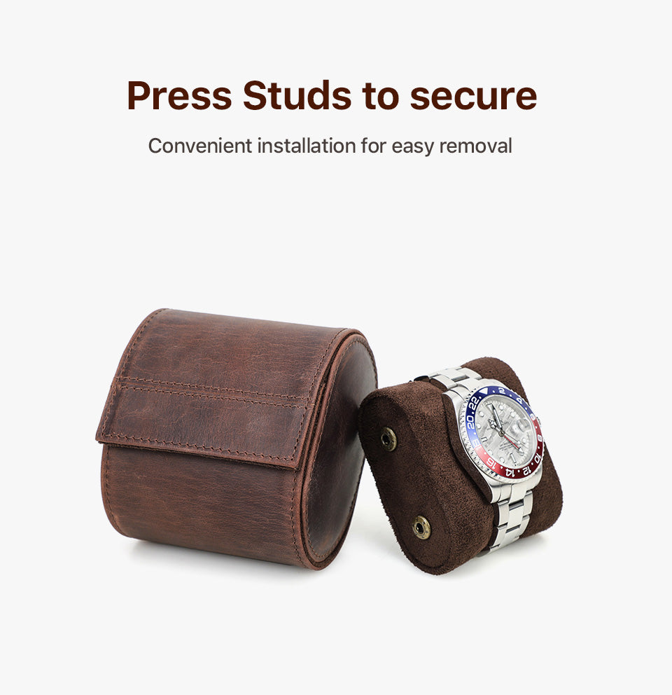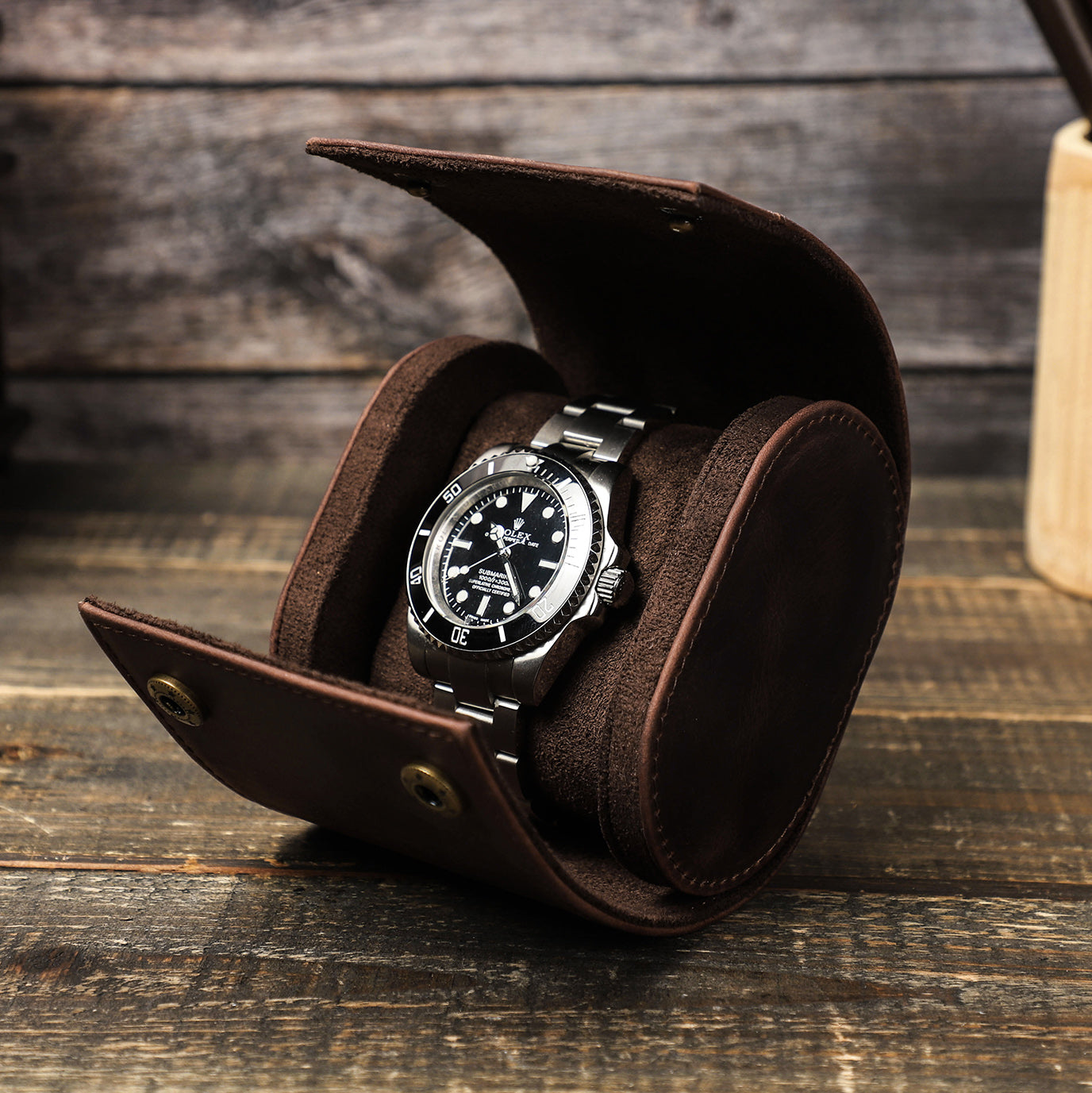 Luxury Leather Watch Roll Case, Portable Single Slot Watch Holder