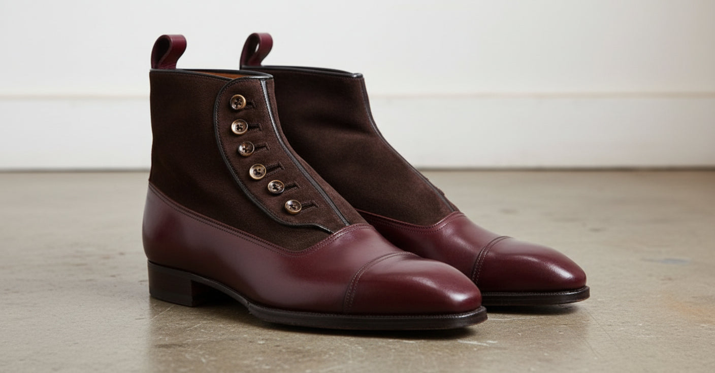 Handcrafted Men's Formal Button Boot in Burgundy