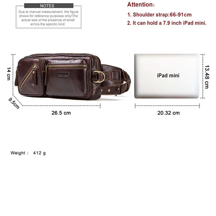 Handmade Genuine Leather Fanny Pack for Men, Multi-Zipper Crossbody Chest & Waist Bag