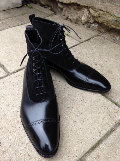 Men's Handmade Black Leather & Suede Lace-up Ankle Boots