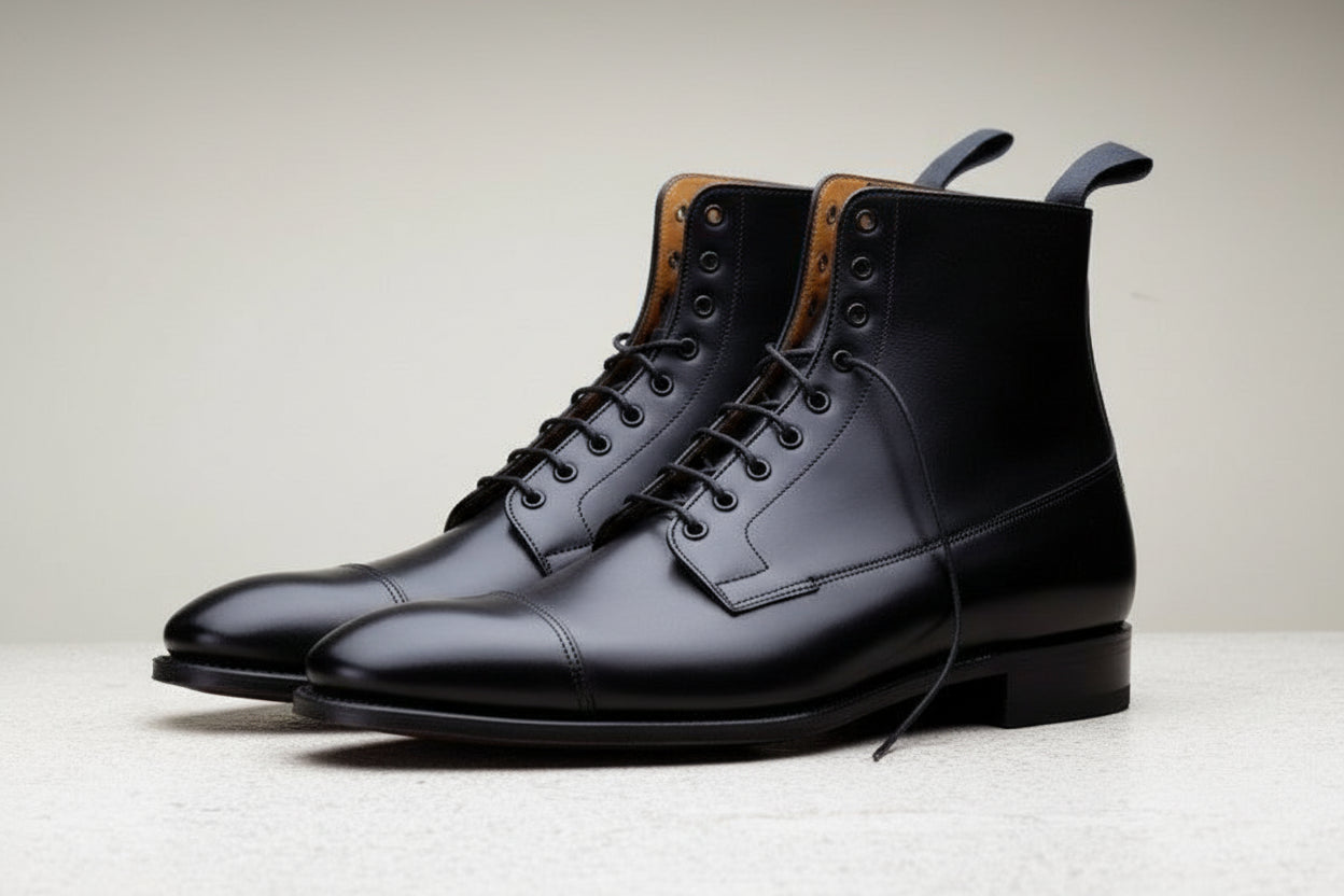 Handcrafted Men's Black Leather Dress Boots