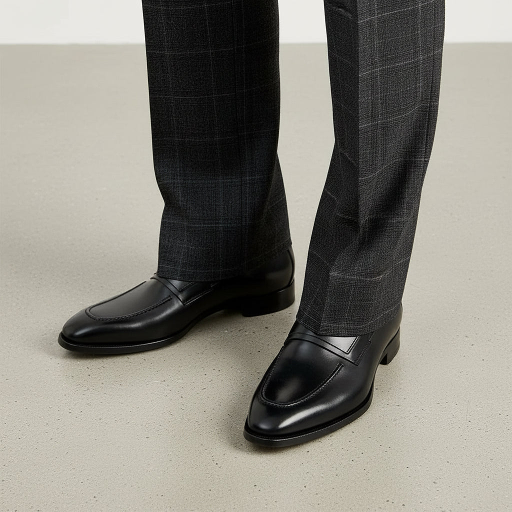 Handcrafted Black Leather Tuxedo Shoes for Men