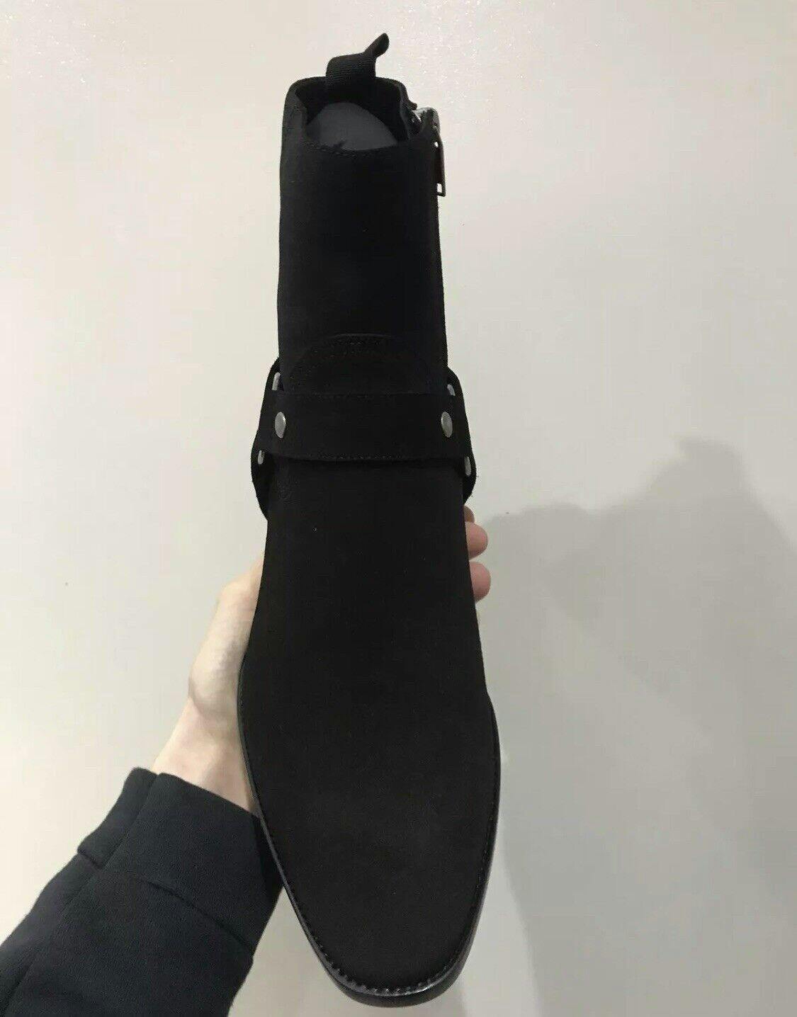 Handcrafted Men's Black Suede Biker Boot with Side Zipper