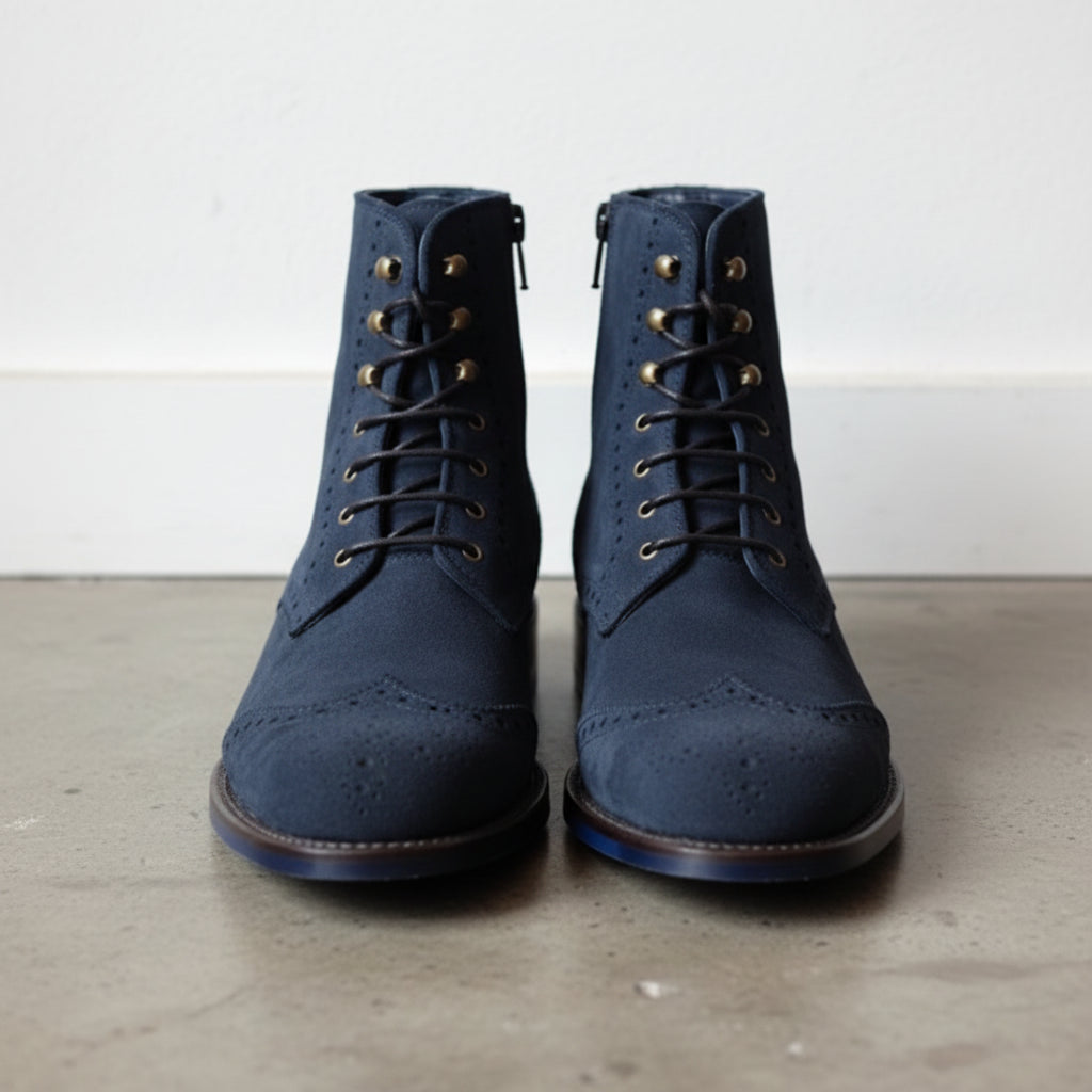 Handcrafted Navy Blue Suede Ankle Boots for Men