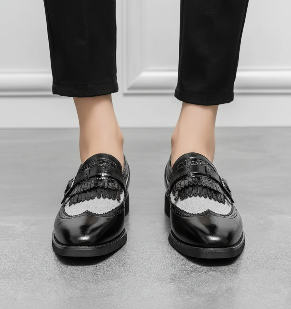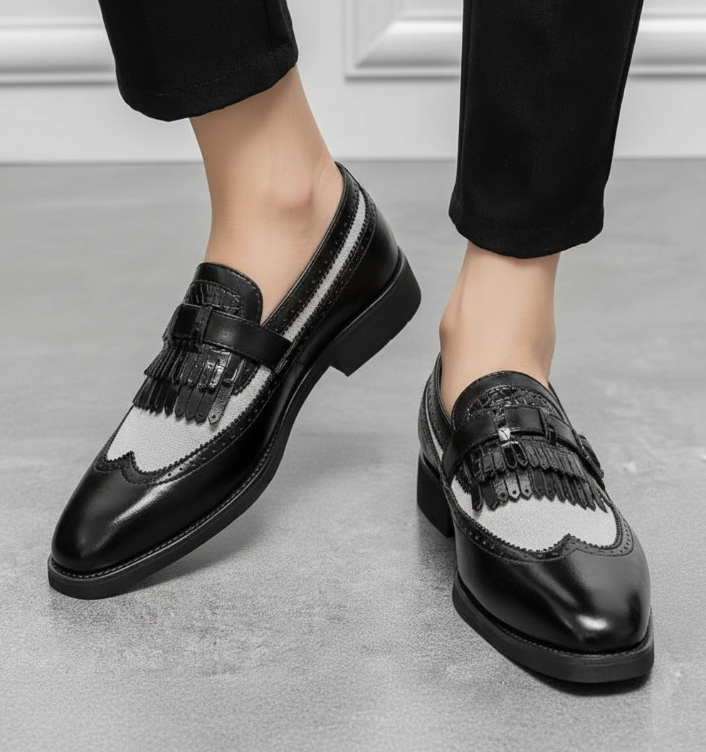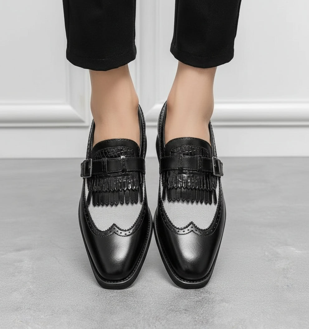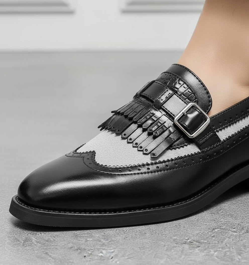 Handmade Men Spectators Shoes, Men Wingtips Fringe Leather Dress Shoes