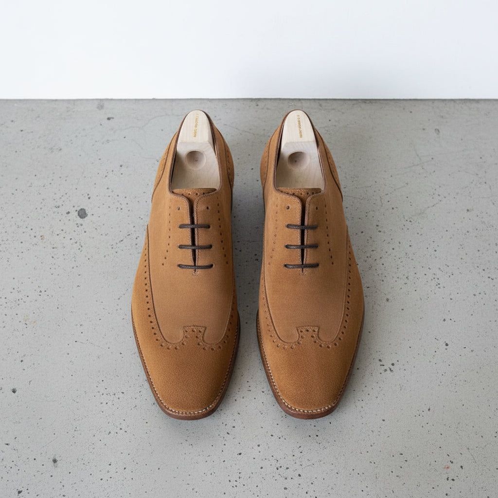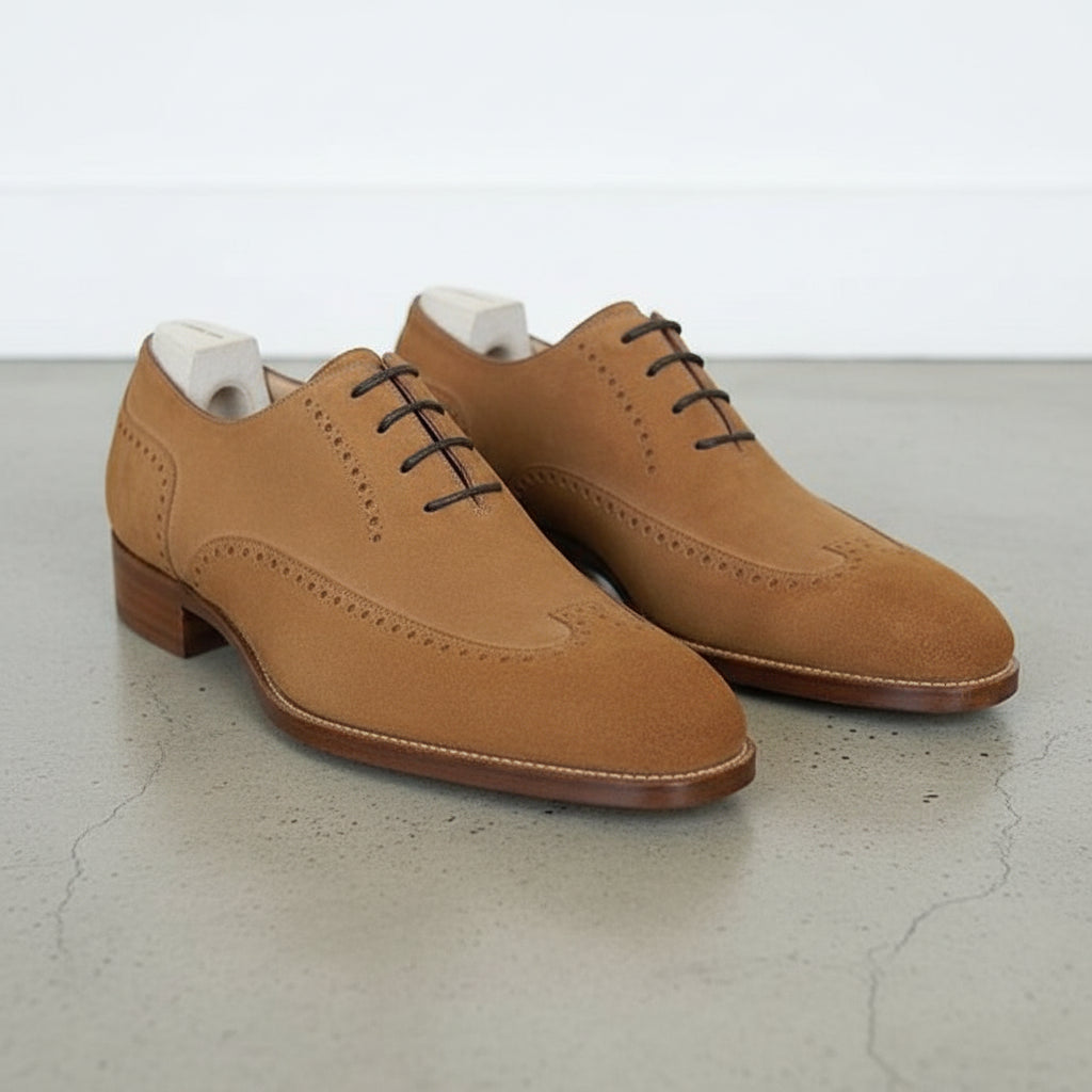 Handmade Men Wing Tip Brogue Dark Beige Suede Formal Shoes Brogue Shoes