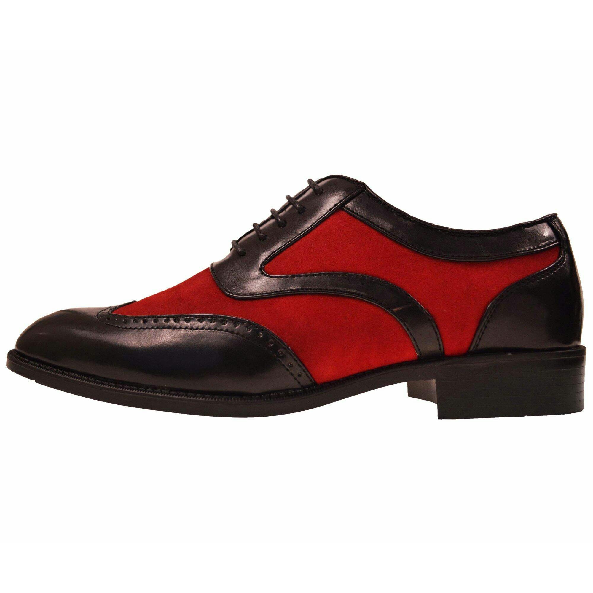 Handmade Mens Oxford Wing Tip Suede and Calf Leather Black and Red