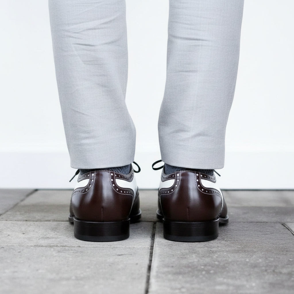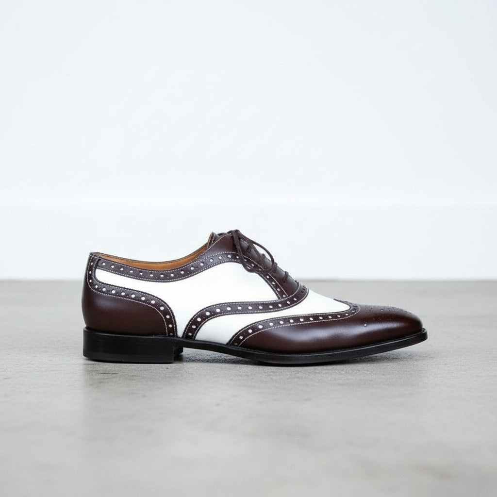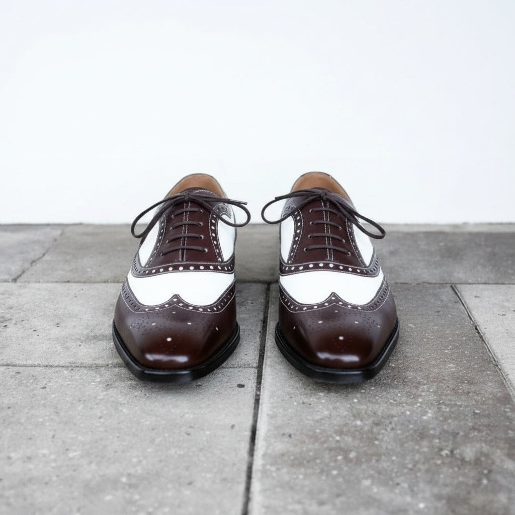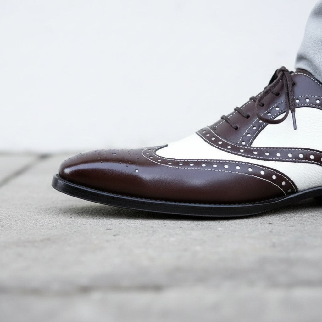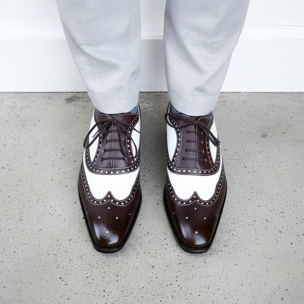 Handmade Mens Spectator Two tone Wing tip brogue Dress shoes