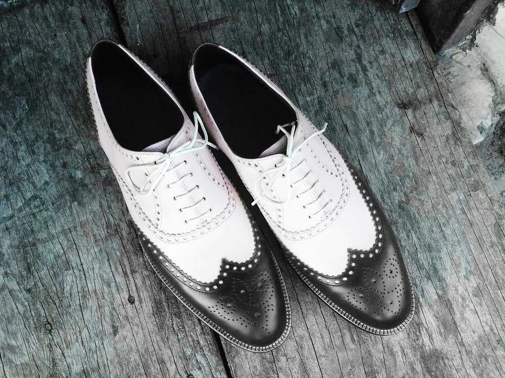 Handmade Mens Spectator Two tone Wing tip brogue Dress shoes, shoes for men