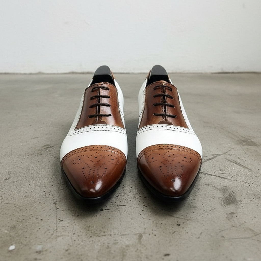 Handmade Mens Two Tone Formal Shoes, Men Spectator Shoes, Pointed Toe Shoes
