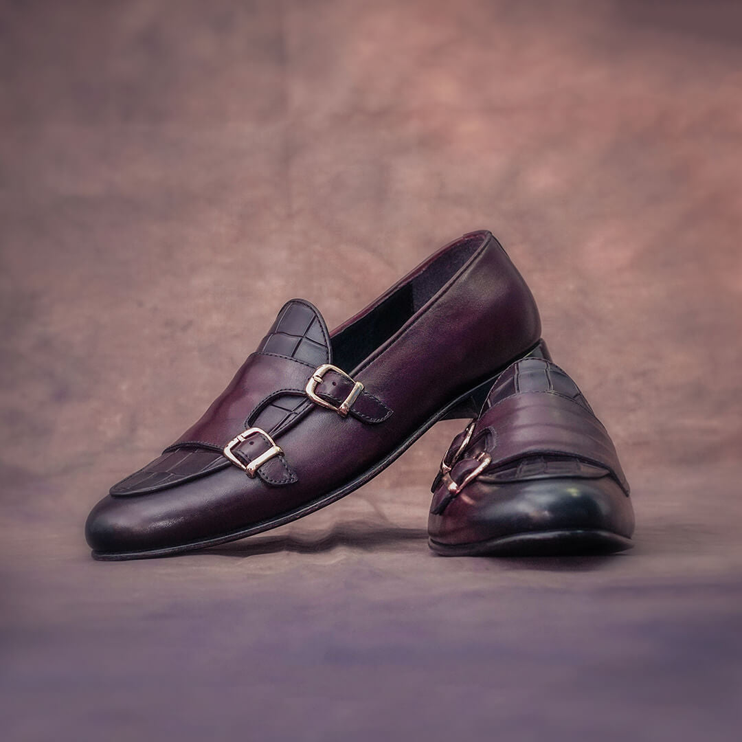 Handmade Men Double Monk Leather Dress Shoes, Penny Loafer Shoes