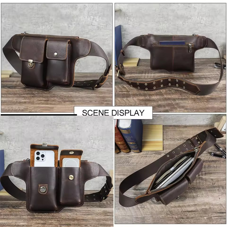 Handmade Punk Style Genuine Leather Men's Waist Belt Bag - Leather Fanny Pack