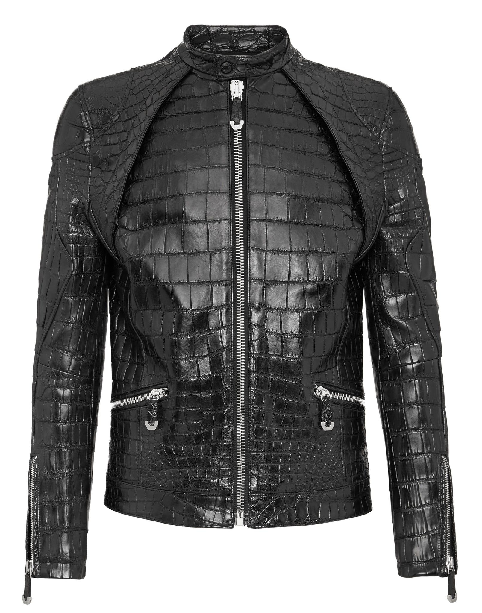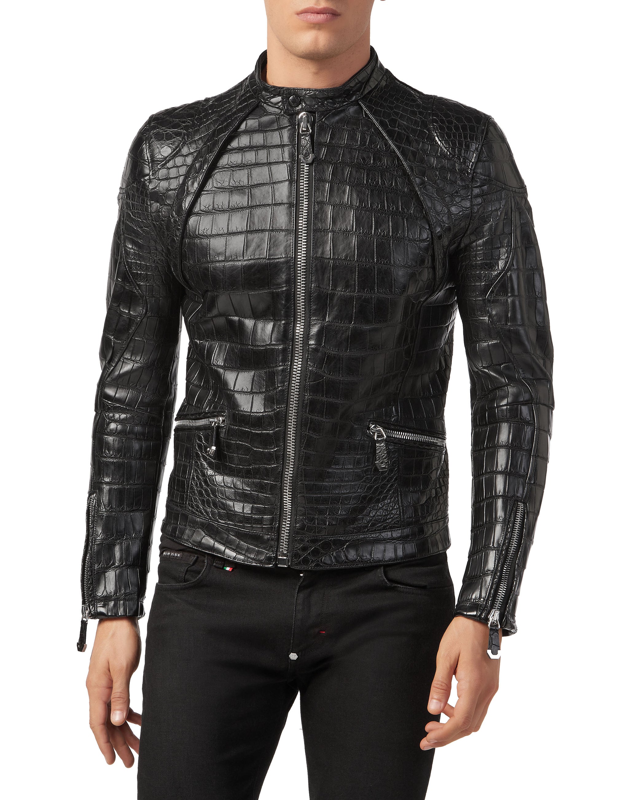 Handmade Men Black Crocodile Embossed Pattern Leather Jacket , Men Leather Jacket