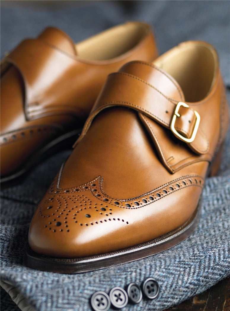Men Tan Wing Tip Brogue Monk Shoes, Men Tan Brown Business Dress Shoes