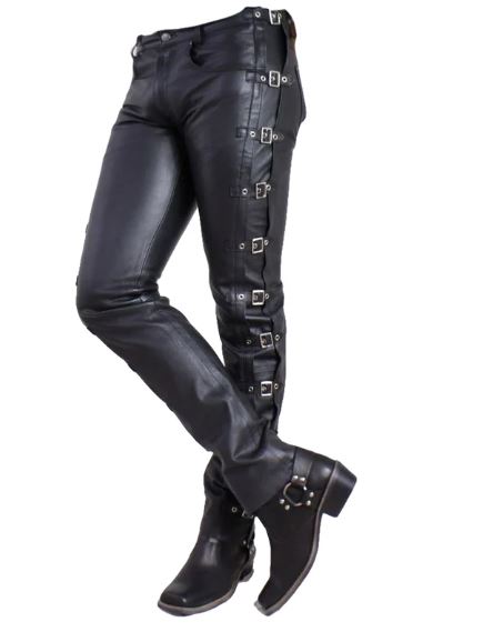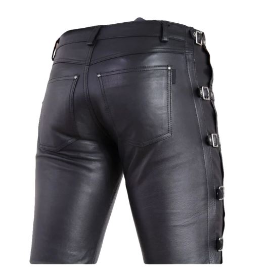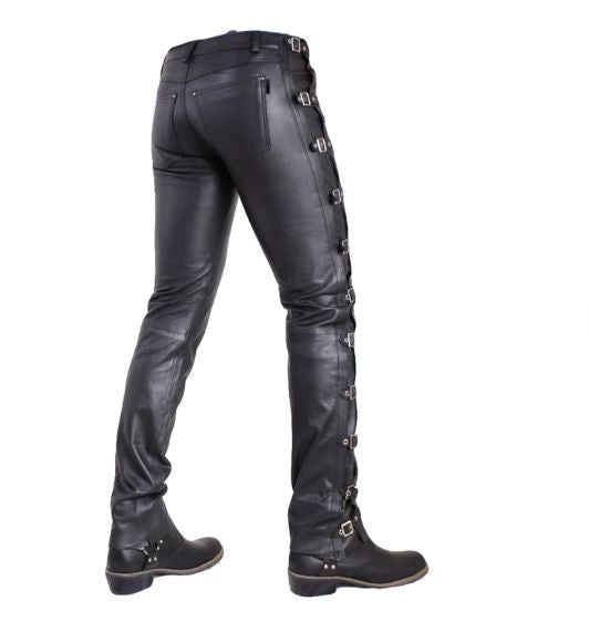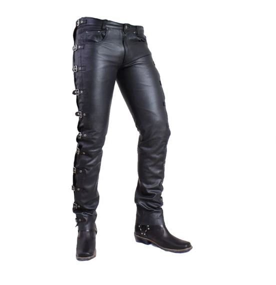 Men's Slim Fit Buckle Leather Pants for Casual and Party Wear