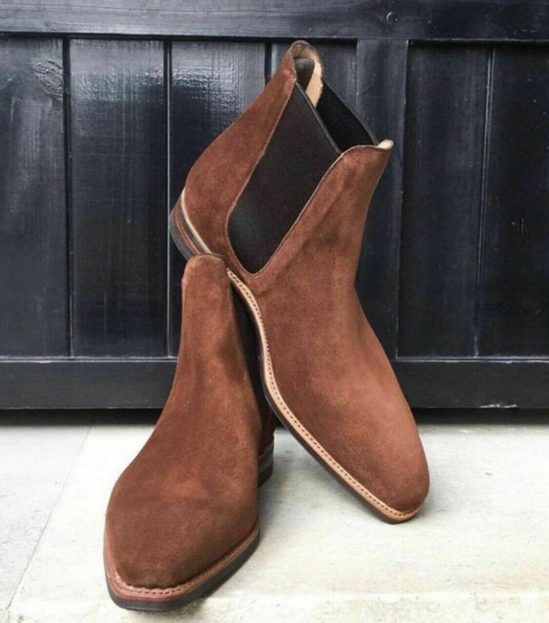 Men's Elegant Suede Chelsea Boots with Square Toe Design