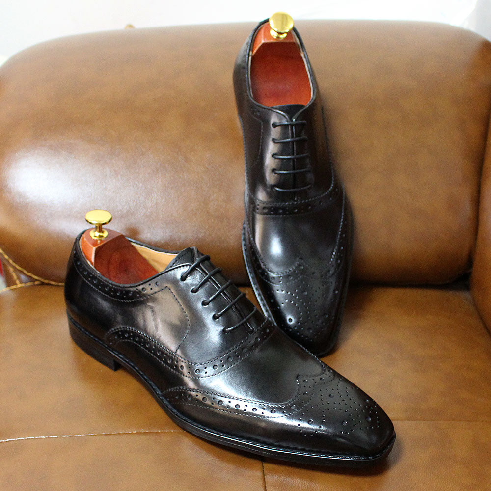 Handmade Mens Back Leather Brogue Dress Shoes, Men Tuxedo Shoes