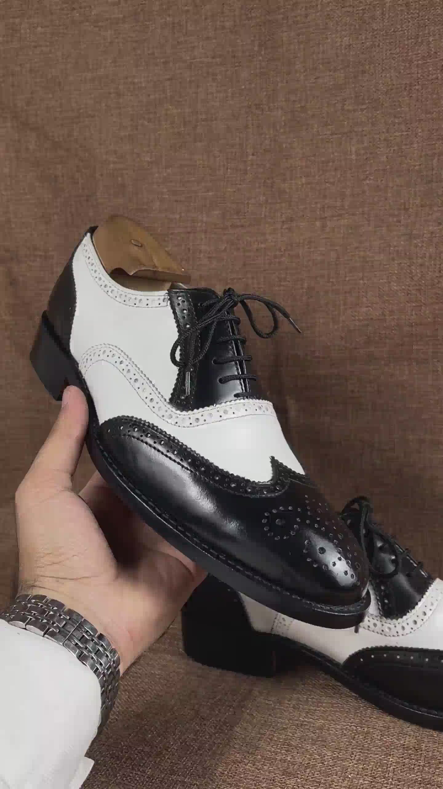 Mens Formal Shoes, Men Black Wing Tip Two Tone Spectator Shoes, Mens Shoes