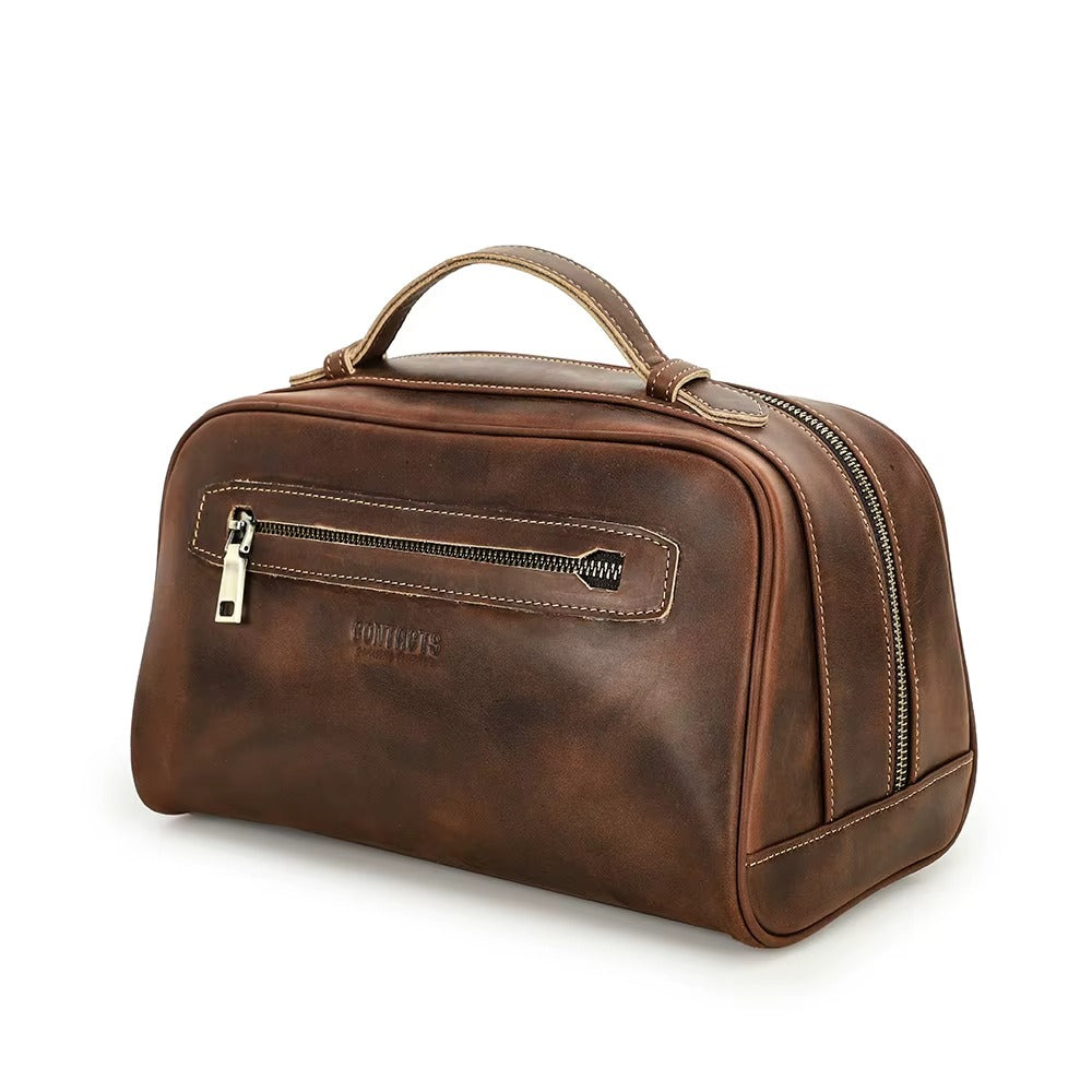 Men's Handheld Leather Toiletry Bag - Distressed Grooming Kit