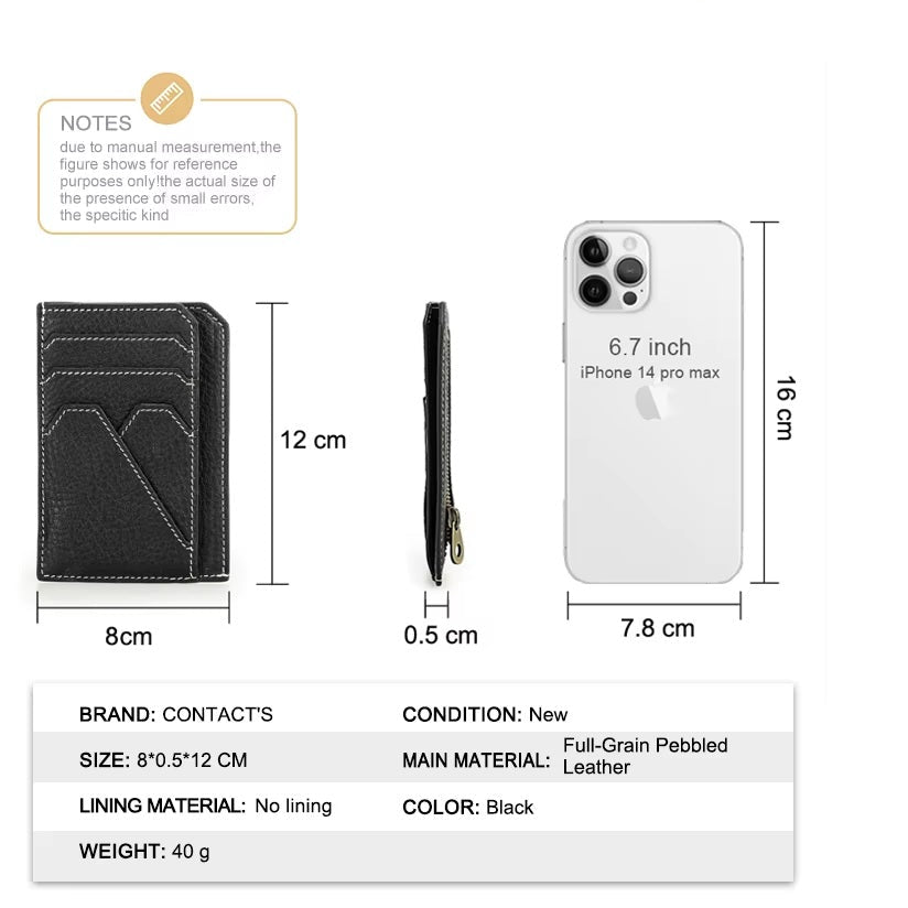 Men's Slim Leather RFID Zipper Coin Purse Wallet