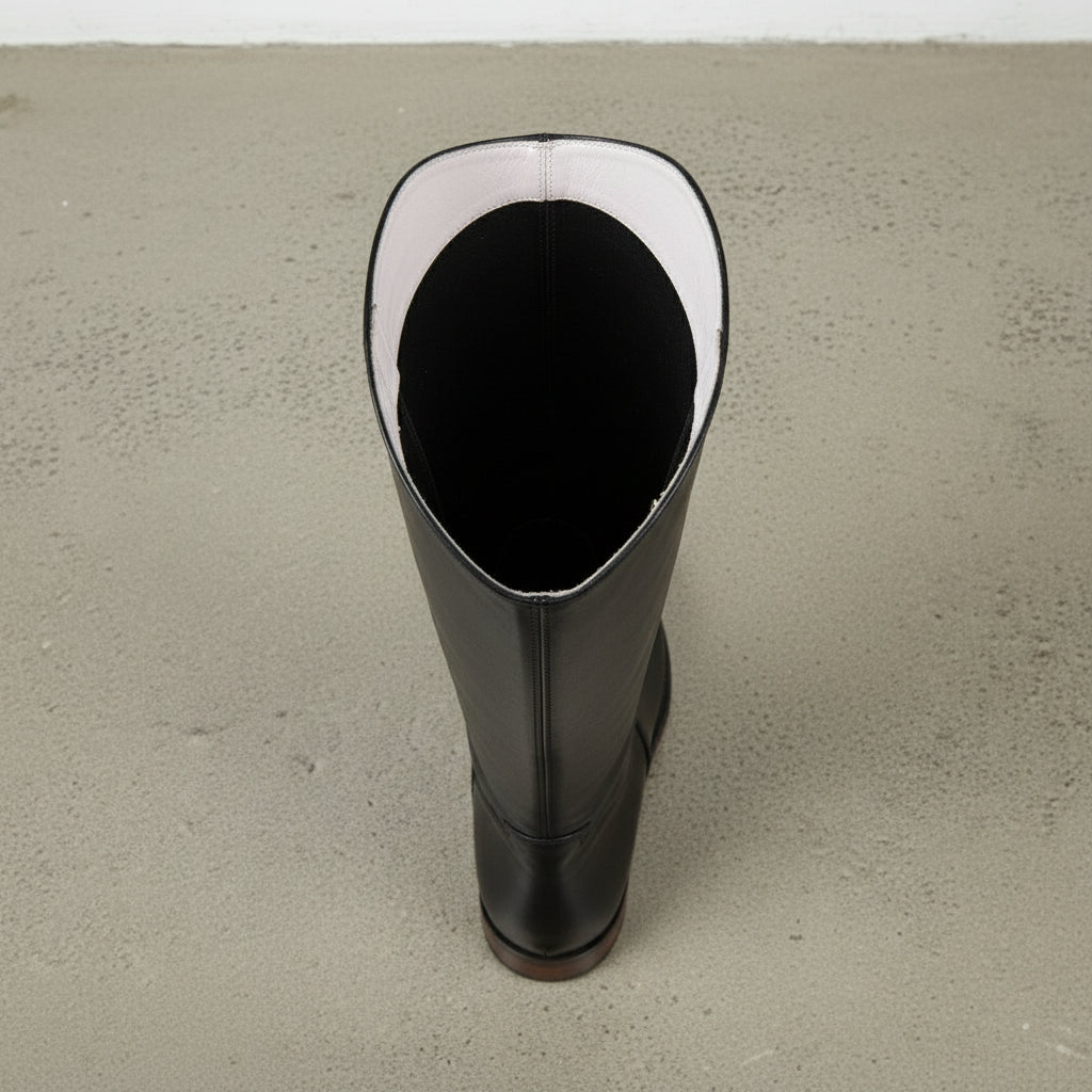 Classic Black Leather Knee-High Boots – Handmade Women’s Riding Boots